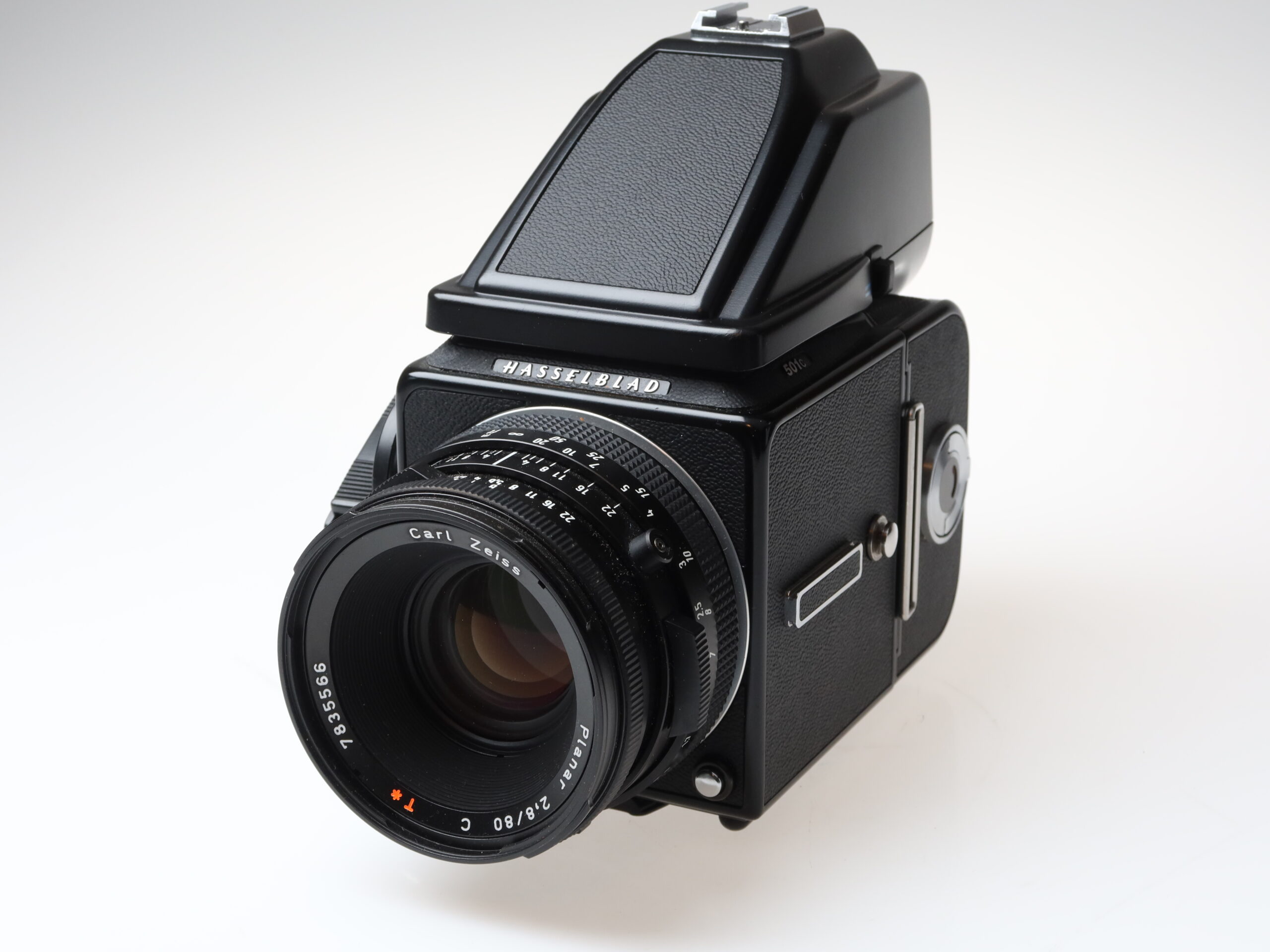 Hasselblad 501C Camera (No. 17ET11472), A12 6×6 Magazine (No. 30ET13655), Zeiss Planar 80mm f/2.8 T* C Lens (No. 7835566), PM 90 Viewfinder (No. 43EI11292)