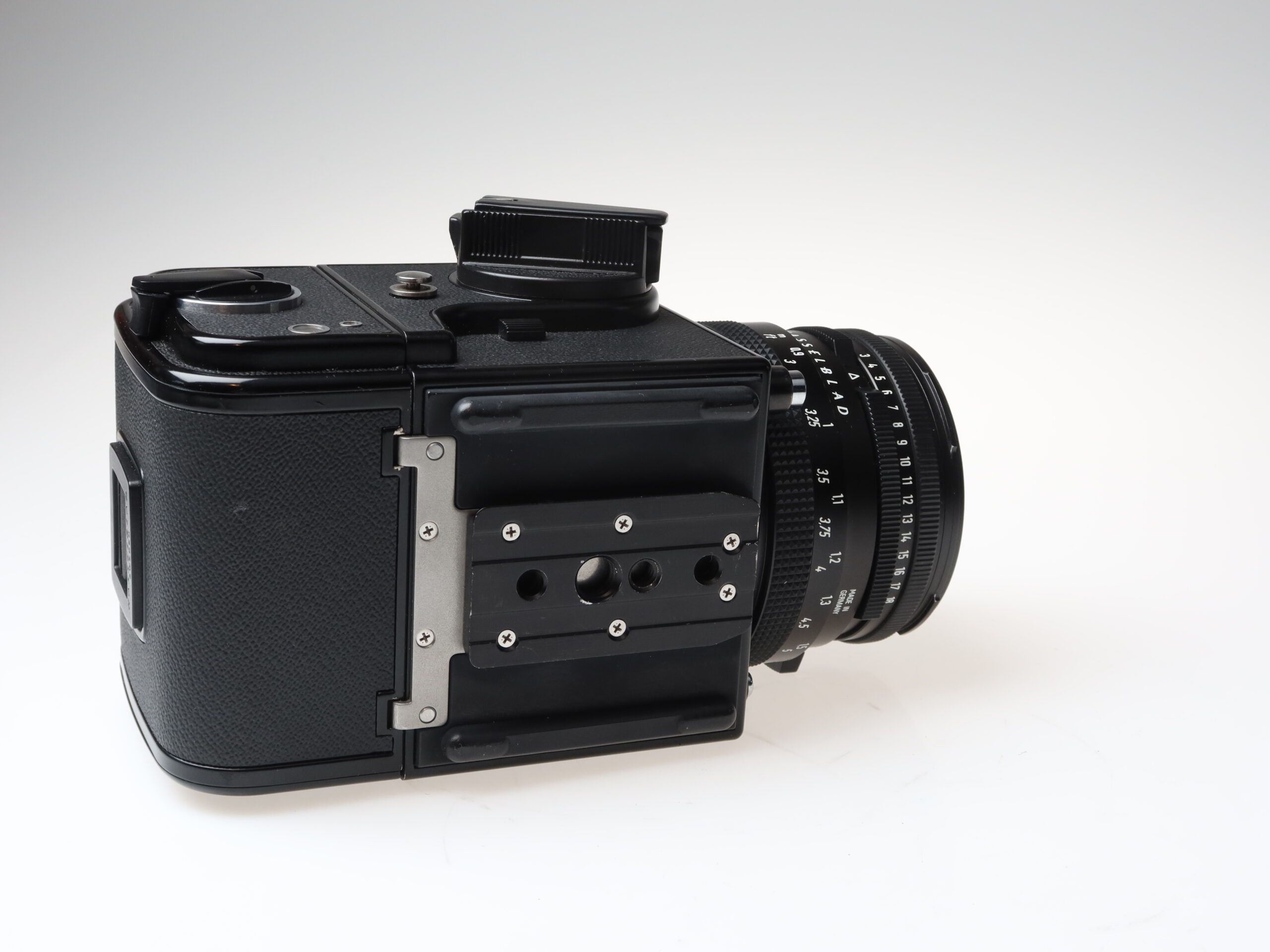 Hasselblad 501C Kamera (Nr.17ET11472) Magazin A12 6×6 (Nr.30ET13655) Zeiss Planar 80mm f2.8 T* C Objektiv (Nr.7835566), Sucher PM 90 (Nr.43EI11292)