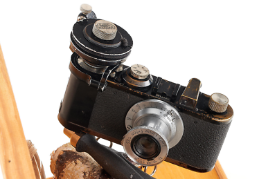 Very attactive nature scenery showing “in action” a rare remote release and winder OOFRC operated by two cords, one for winding, the other for shutter release, in good condition and working order, mounted on a Leica I Mod. C with Elmar 3.5/5cm, with 55cm high wooden structure problably made in the 1950-60s, definitely a lovely set