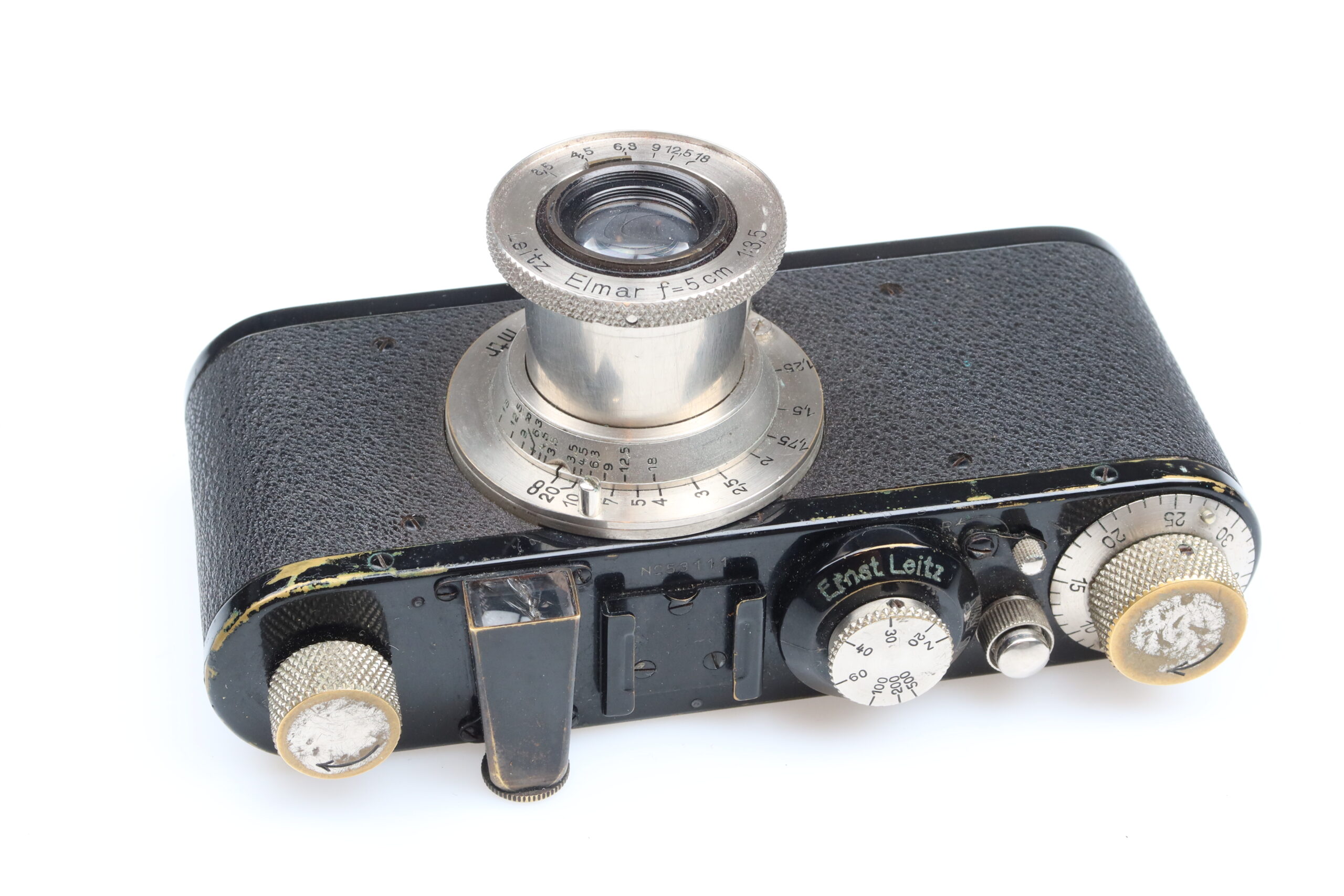 Leica IC black nickel camera, Leitz (No. 53111), Elmar 50mm f/3.5 lens (No serial number):