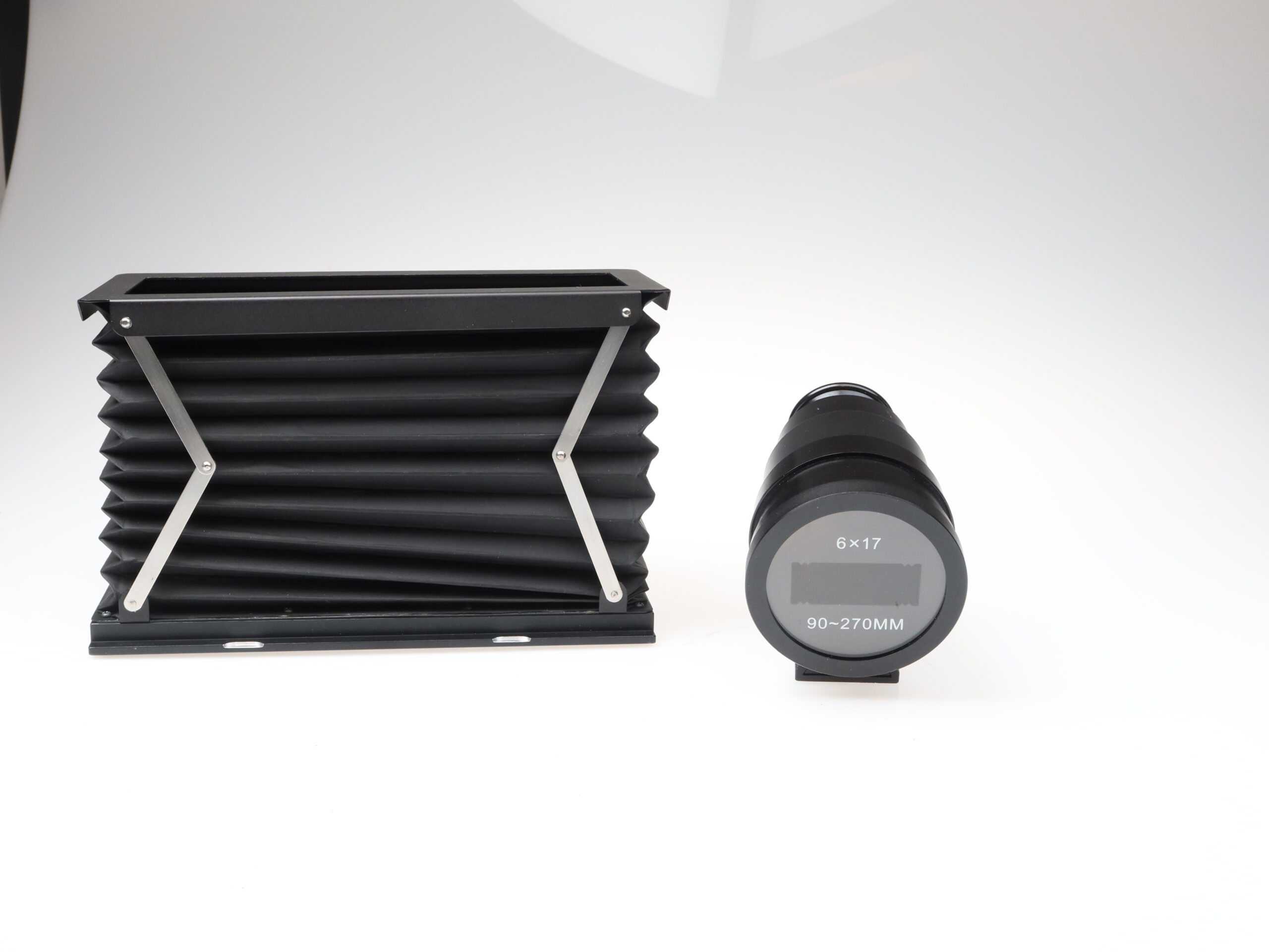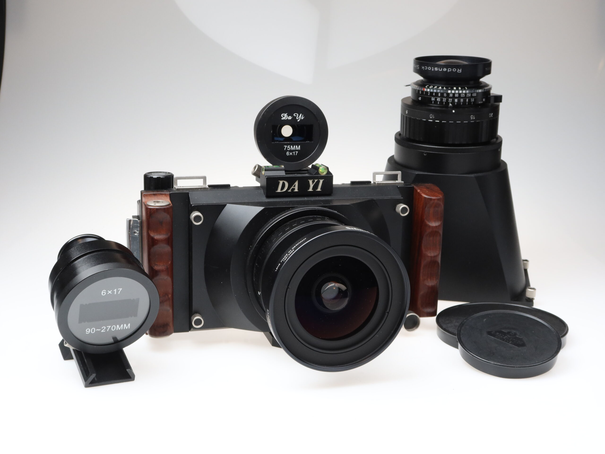 DA YI 6×17 Camera (No serial number) Schneider Kreuznach Shift Super Angulon 72mm f/5.6 XL 115° MC lens (No. 15013304) Rodenstock Sironar-N 210mm f/5.6 MC lens (No. 9750694) Da Yi 75mm 6×17 viewfinder, 6×17 90-270mm viewfinder, bellows with focusing screen: