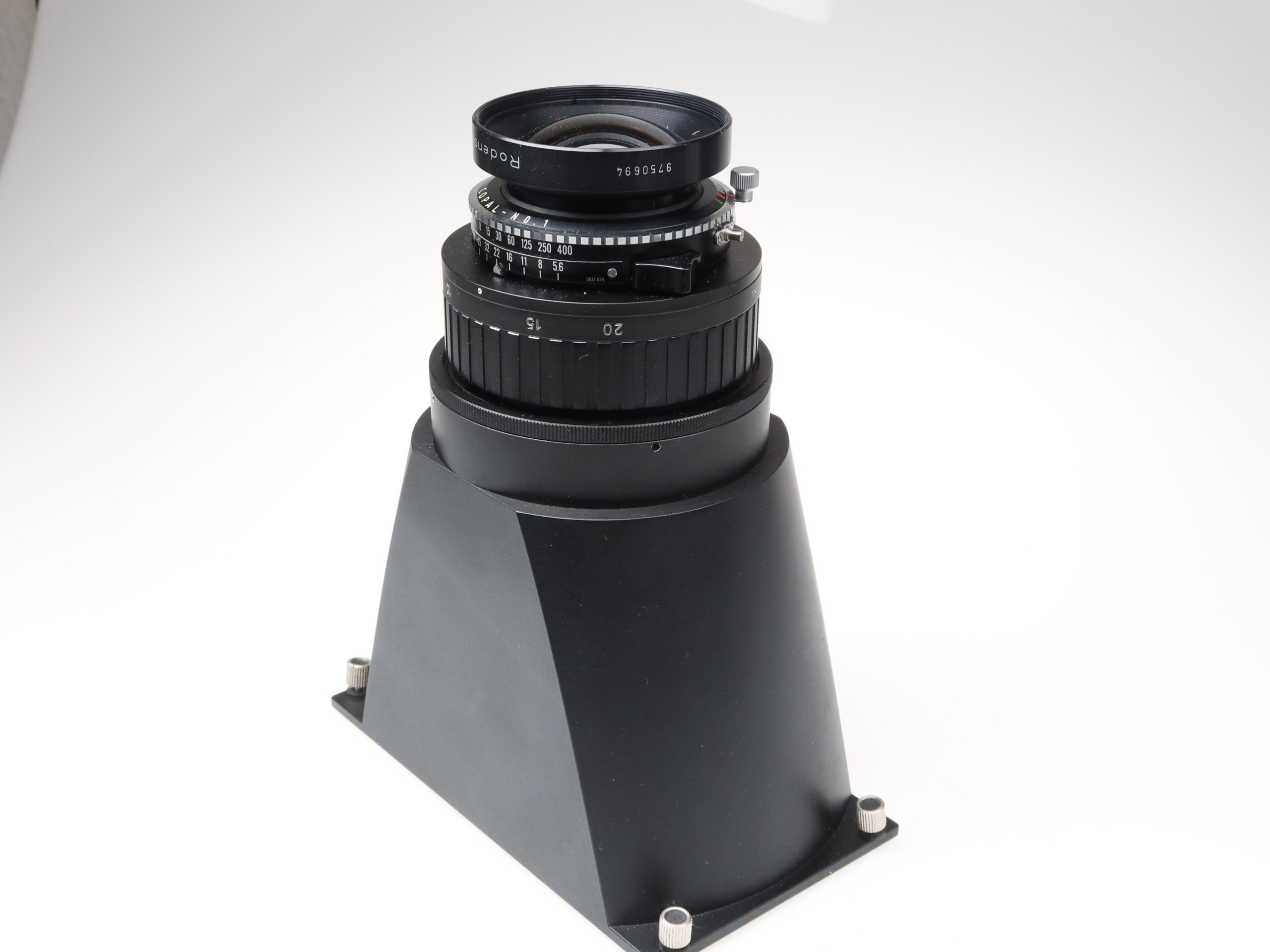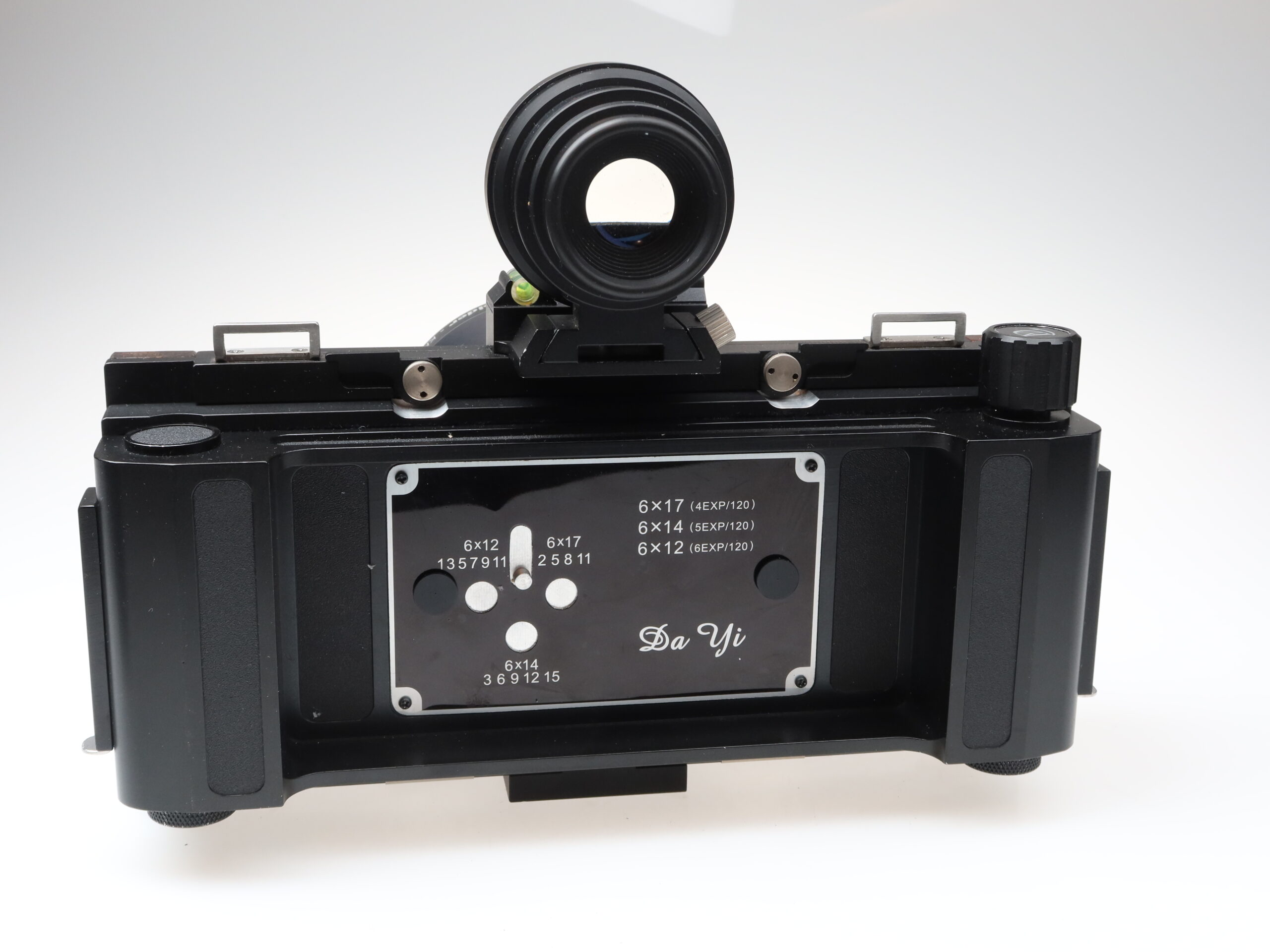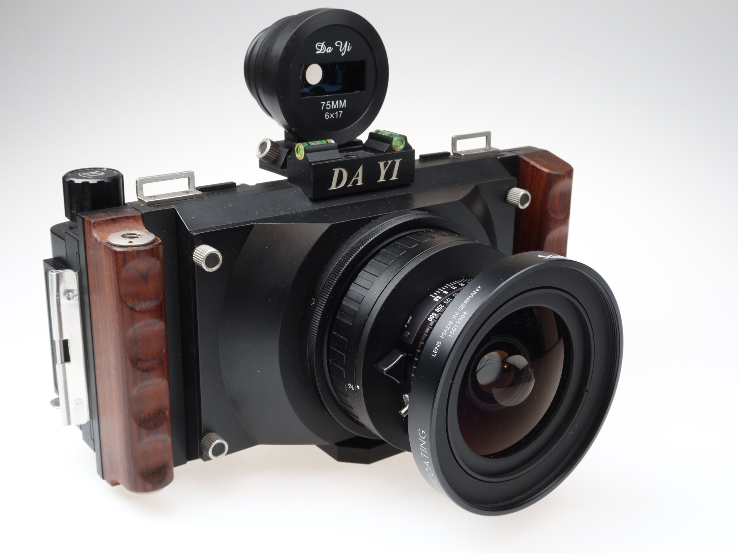 DA YI 6×17 Kamera (Nr.ohne) Schneider Kreuznach Shift Super Angulon 72mm f5.6 XL 115° MC Objektiv (Nr.15013304) Rodenstock Sironar-N 210mm f5.6 MC Objektiv (Nr.9750694) Da Yi 75mm 6×17 Sucher, Sucher 6×17 90-270mm, Balgen mit Mattscheibe: