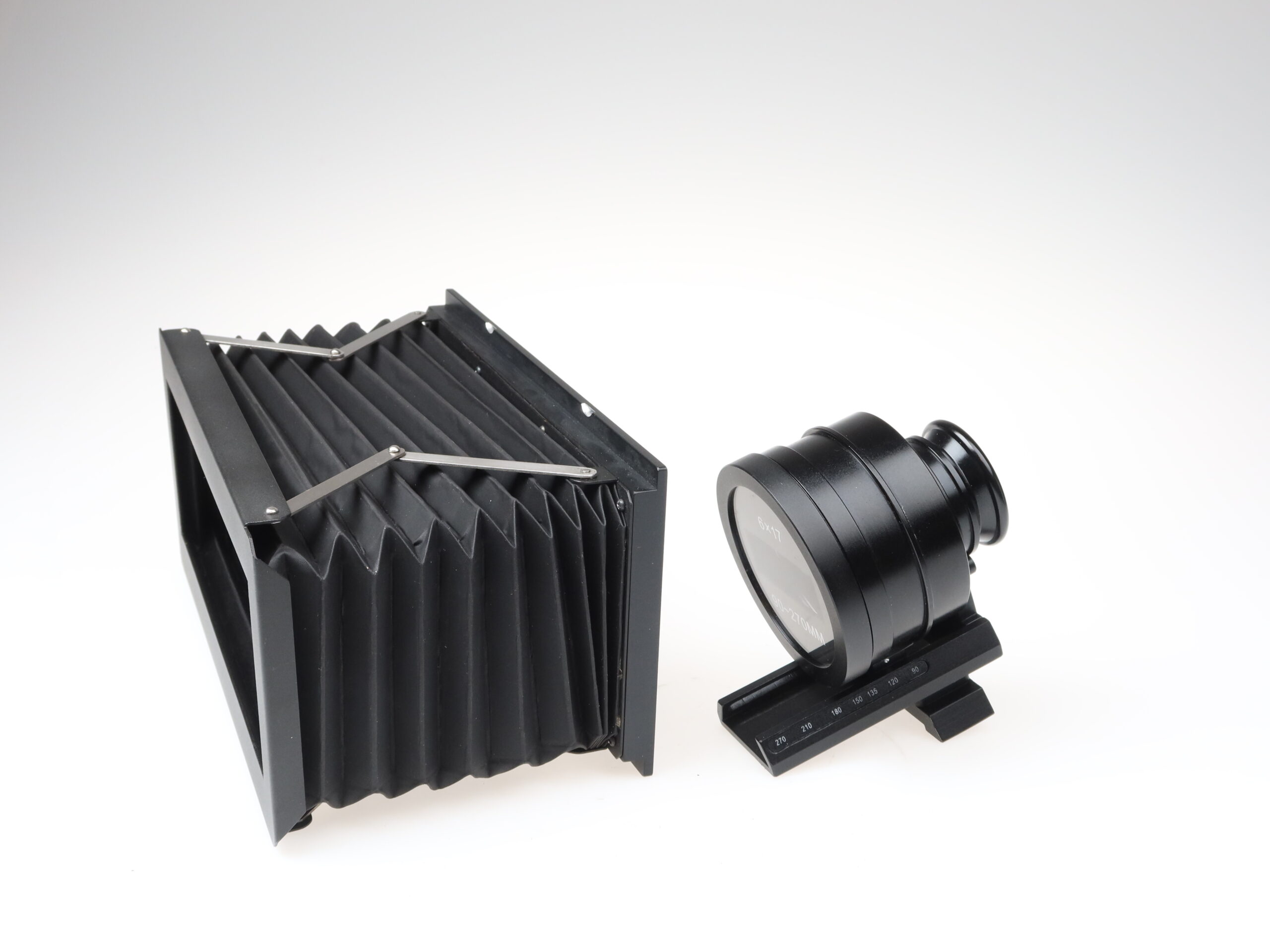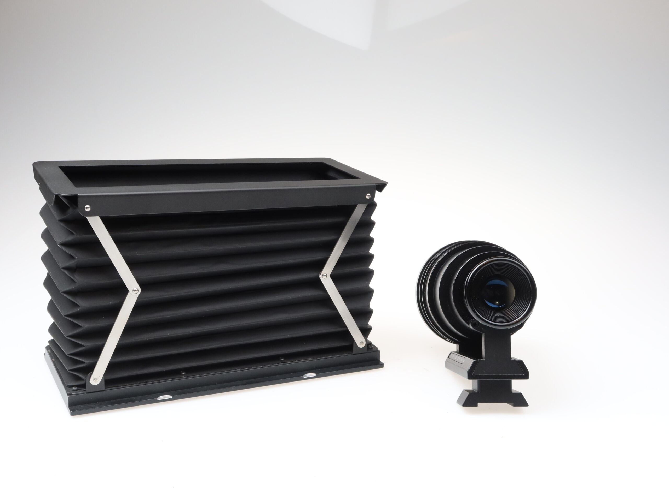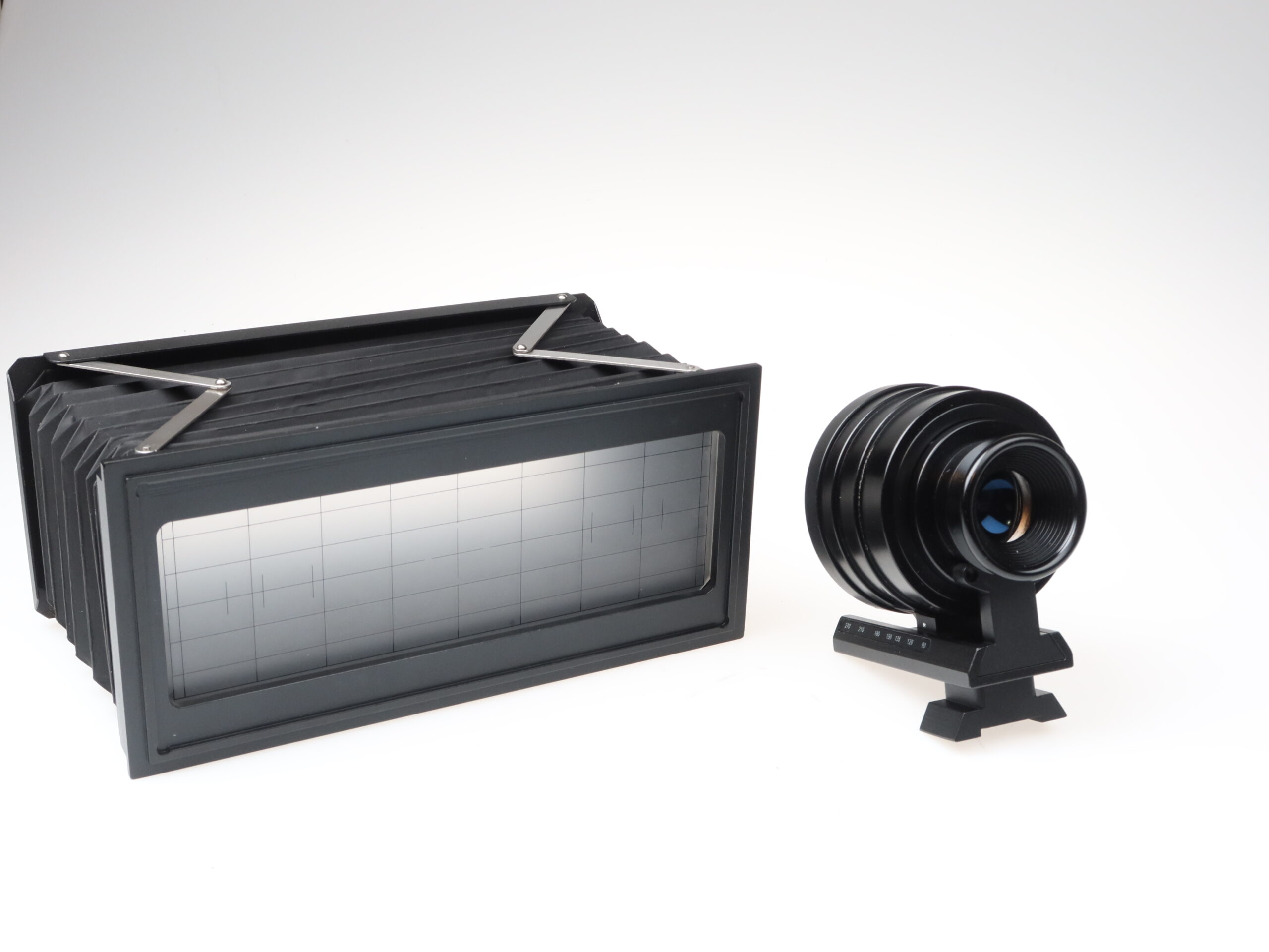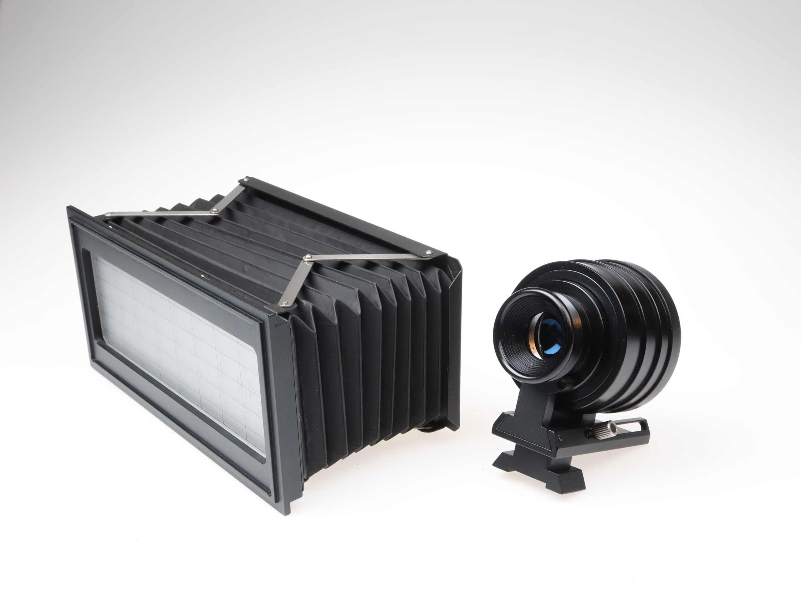 - The camera bodies (camera, lenses, bellows, and viewfinder) are in very good condition with only minimal signs of use, almost like new.