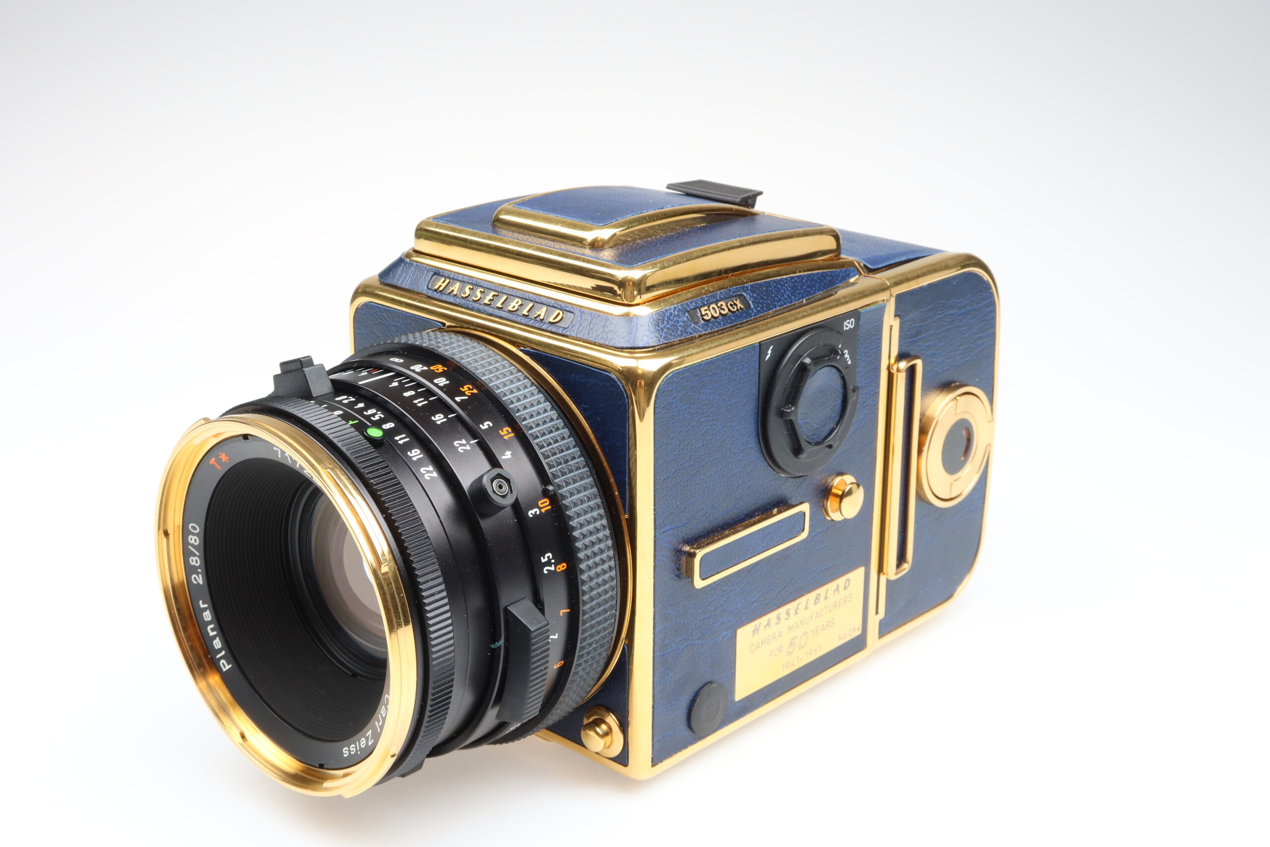 Hasselblad 503cx golden blue Kamera“50th Anniversary camera“ Zeiss Planar 80mm f2.8 T* Objektiv lens near mint