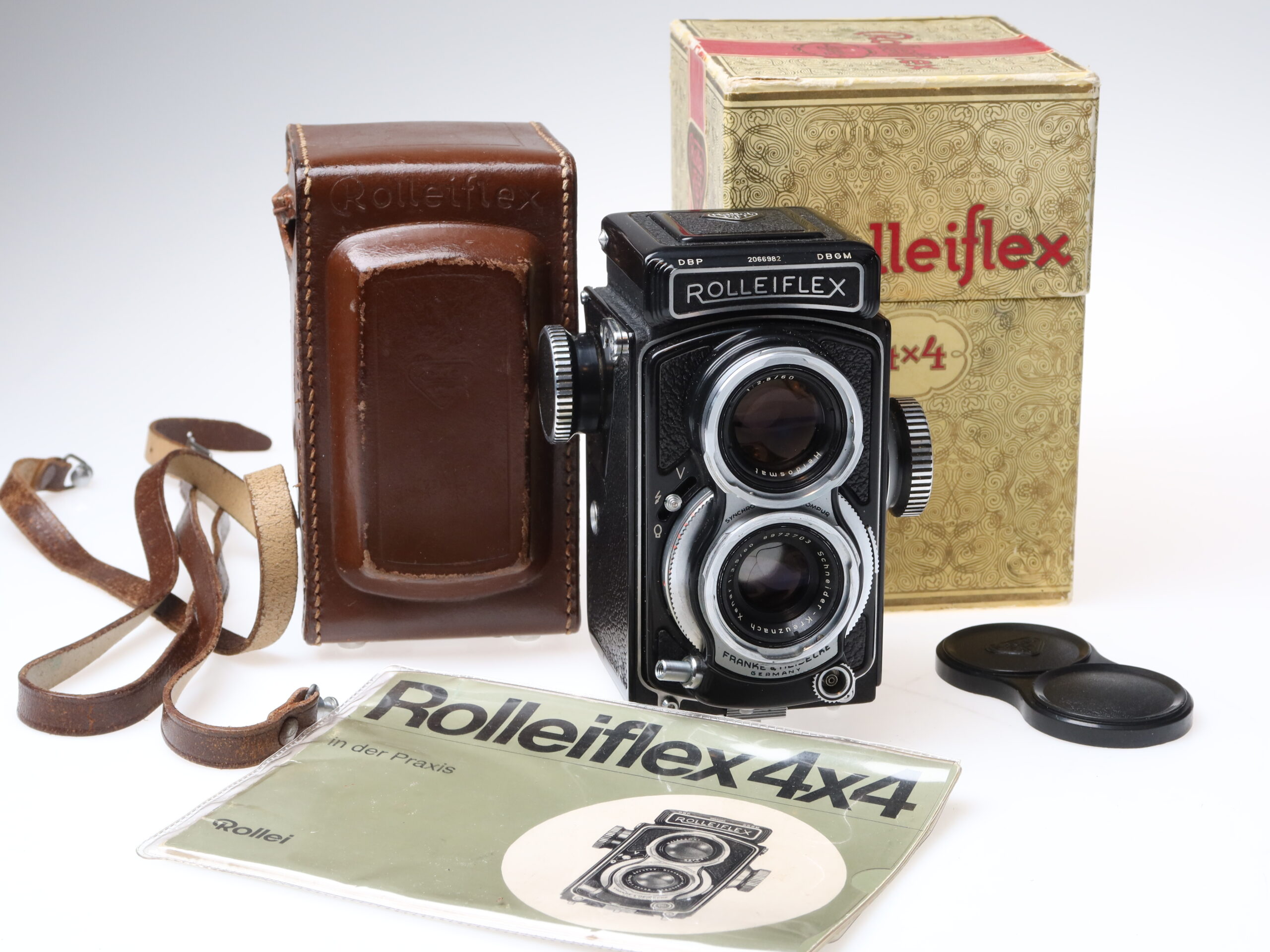 Rolleiflex 4×4 Baby Kamera (Nr.2066982) mit Schneider Kreuznach Xenar 60mm f3.5 Objektiv ( Nr.8972703).
