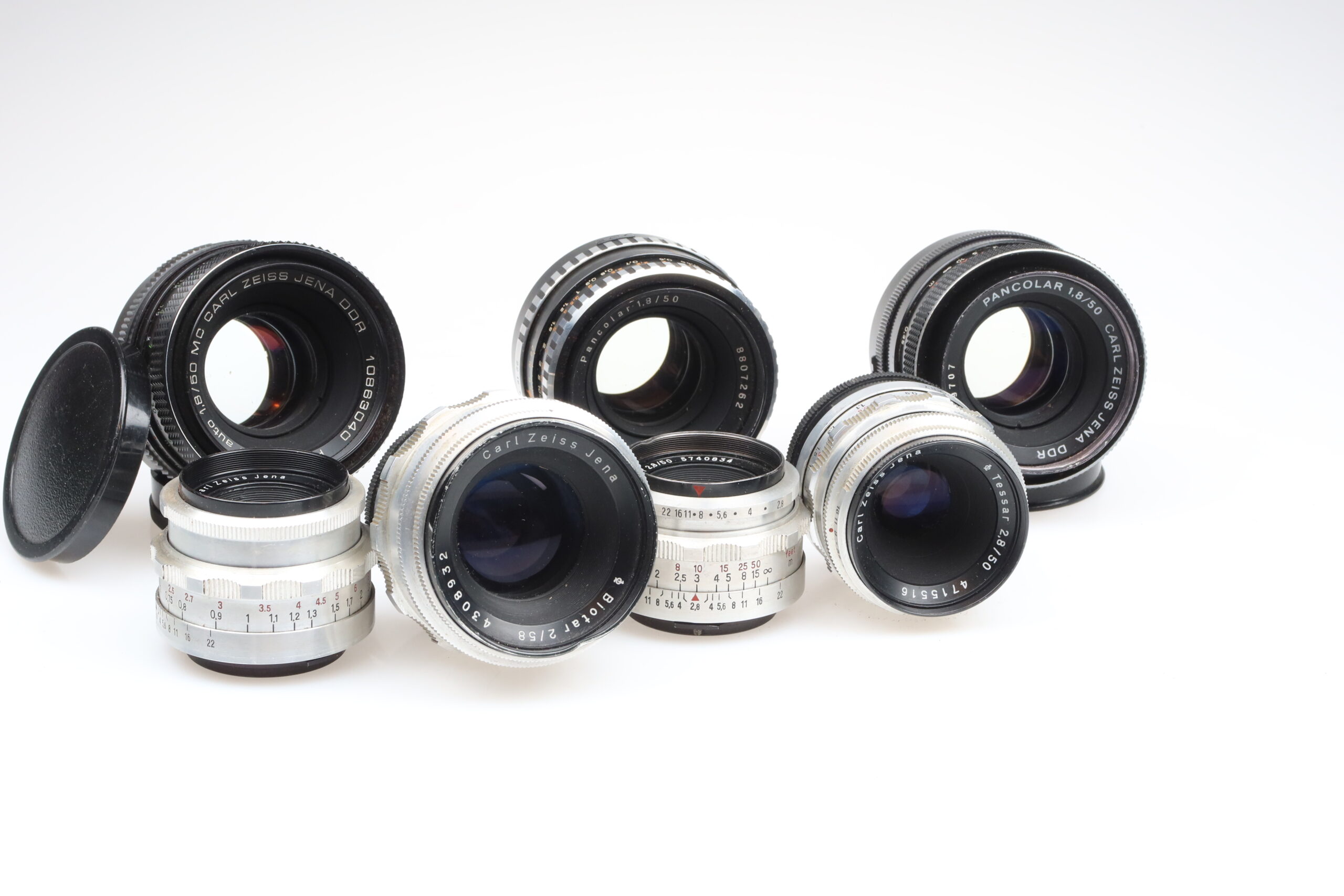 ZEISS 3x Pancolar 50 3x Tessar 50 1x Biotar 58 Objektive wie folgt: