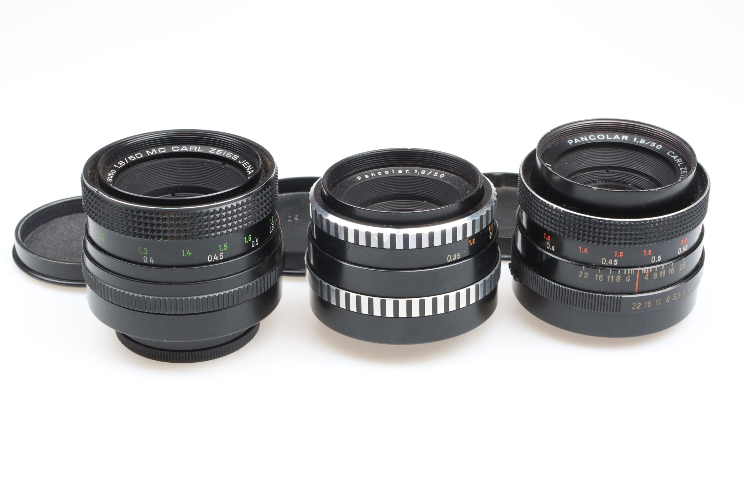 - Carl Zeiss Pancolar 50mm f/1.8 MC lens (No. 10863040) with front and rear caps.